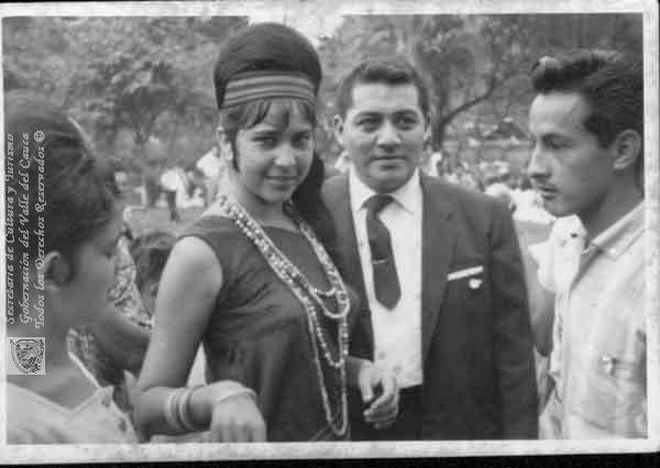 Libaros Muñoz y Evelio Sánchez., acompñando a la Reina de la Comuna. Santiago de Cali, C. 1.963