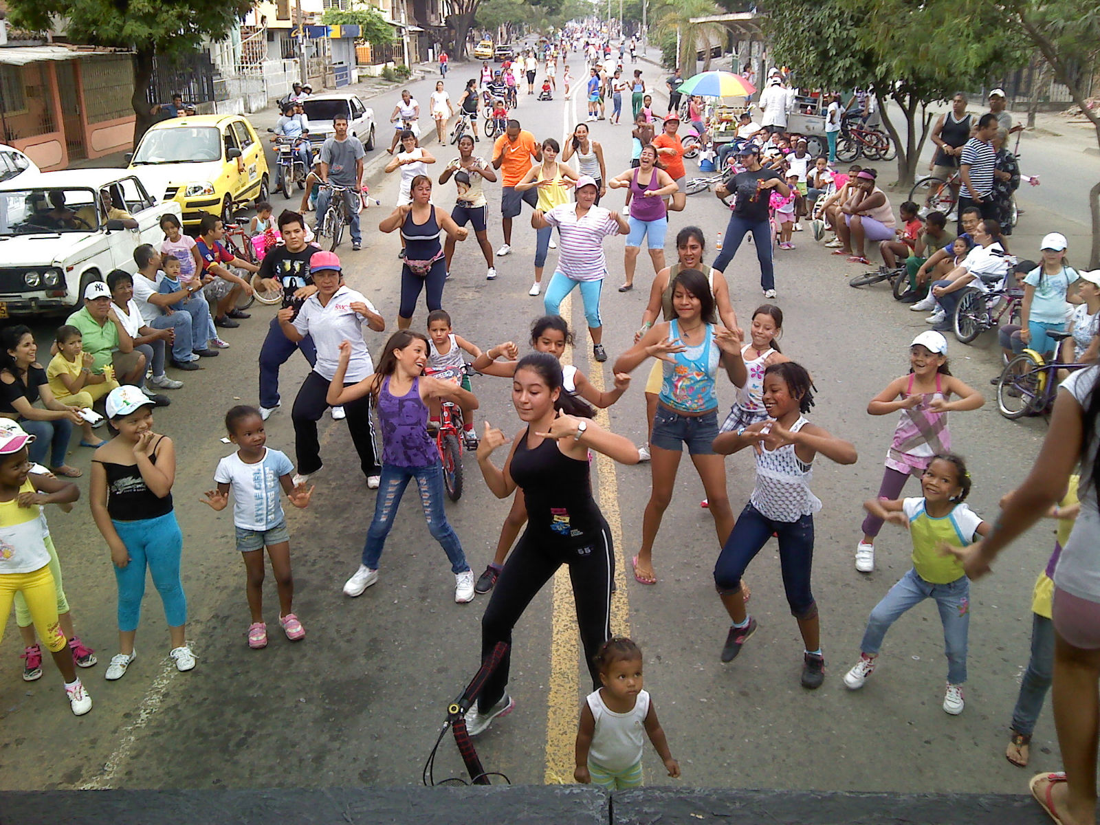 La CicloVida de Cali, es un programa de la Alcaldía de Santiago de Cali, liderado por la Secretaría del Deporte y Recreación, actividad incluyente para toda la ciudadanía, donde se cierran temporalmente las calles para los vehículos y se abren para los habitantes de la ciudad, todos los domingos de 8:00 am a 1:00 pm para que disfruten de un espacio seguro y gratuito para que en familia o amigos disfruten de la actividad física, recreación, deporte y cultura. Se aprecia en la imagen, Ejercicios aeróbicos con instructora dirigida a las personas del barrio la nueva floresta. Observamos niños y adultos participando de las actividades. Apreciamos masiva participación de las personas cada domingo en la ciclovida