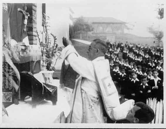 s. n. & s. n. (1943). SACERDOTE OFICIANDO MISA EN UN ACTOR CONMEMORATIVO DEL COLEGIO DE DE SANTA LIBRADA & 202462. SANTIAGO DE CALI: Biblioteca Departamental Jorge Garces Borrero.