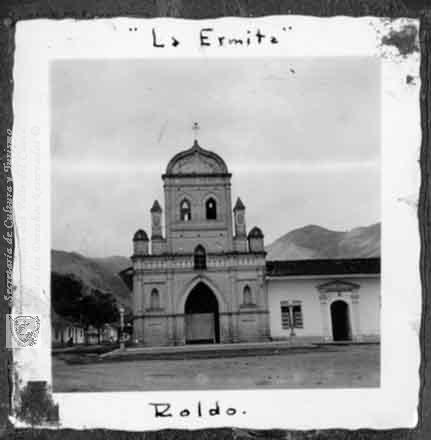Panorámica de la Capilla de la Ermita en el parque Guerrero. Roldanillo, fecha aproximada. 1950.