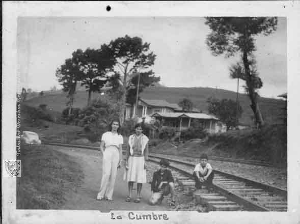 Maruja Riascos y amigas en la carrilera del tren a su paso por La Cumbre. 1.929