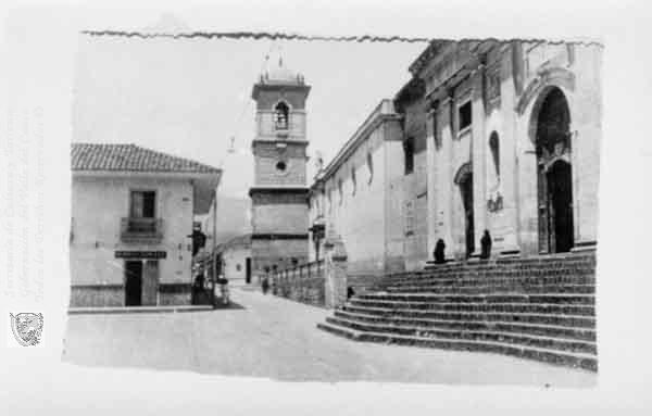 s. n. (1940). Plazoleta de San Francisco, al fondo se observa la Torre Múdejar & 202371. SANTIAGO DE CALI: Biblioteca Departamental Jorge Garces Borrero.