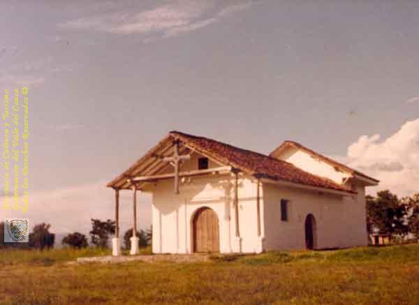 Capilla colonial doctrinera El Overo, felizmente restaurada durante la administración del Dr. Ernesto González Caicedo. Bugalagrande, 1985.