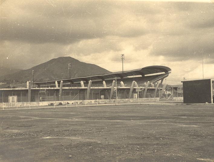 Gimnasio Olimpico, construido para los VI juegos panamericanos de 1971 con Cali como sede principal del evento deportivo. Santiago de Cali, 1975.