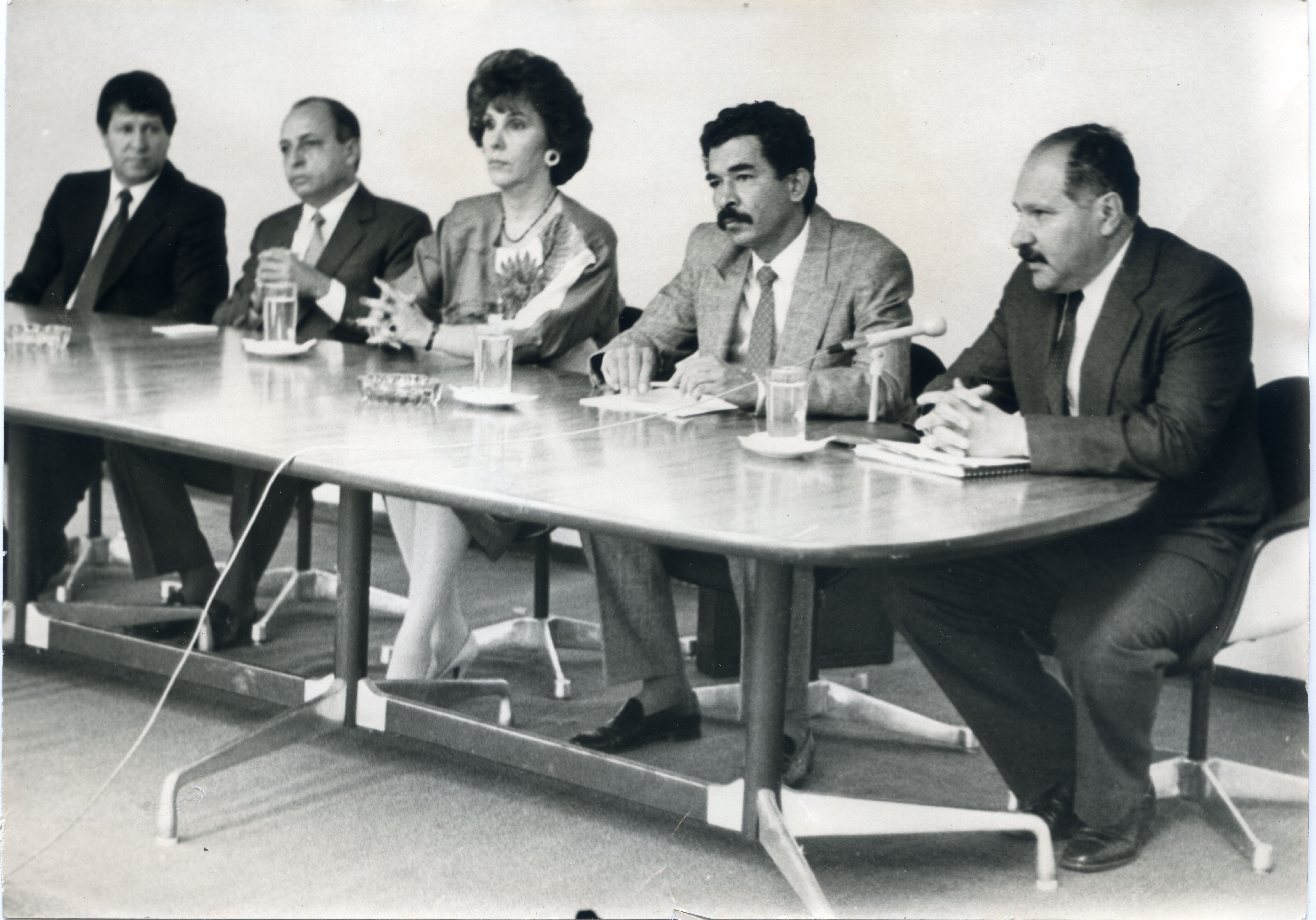 Presentación ante la Cámara de Comercio de Cali del proyecto de oficina de Apoyo Judicial.En la fotografía aparecen l,el jefe de Carrera Judicia José Joaquín Gamboa, el rector de la Universidad del Valle, Harold Rizo, la presidente del Tribunal Superior de Cali, Socorro Cadavid de Giraldo el secretario general de Minjusticia, Diógenes Plata y el profesor Jaime Galarza."