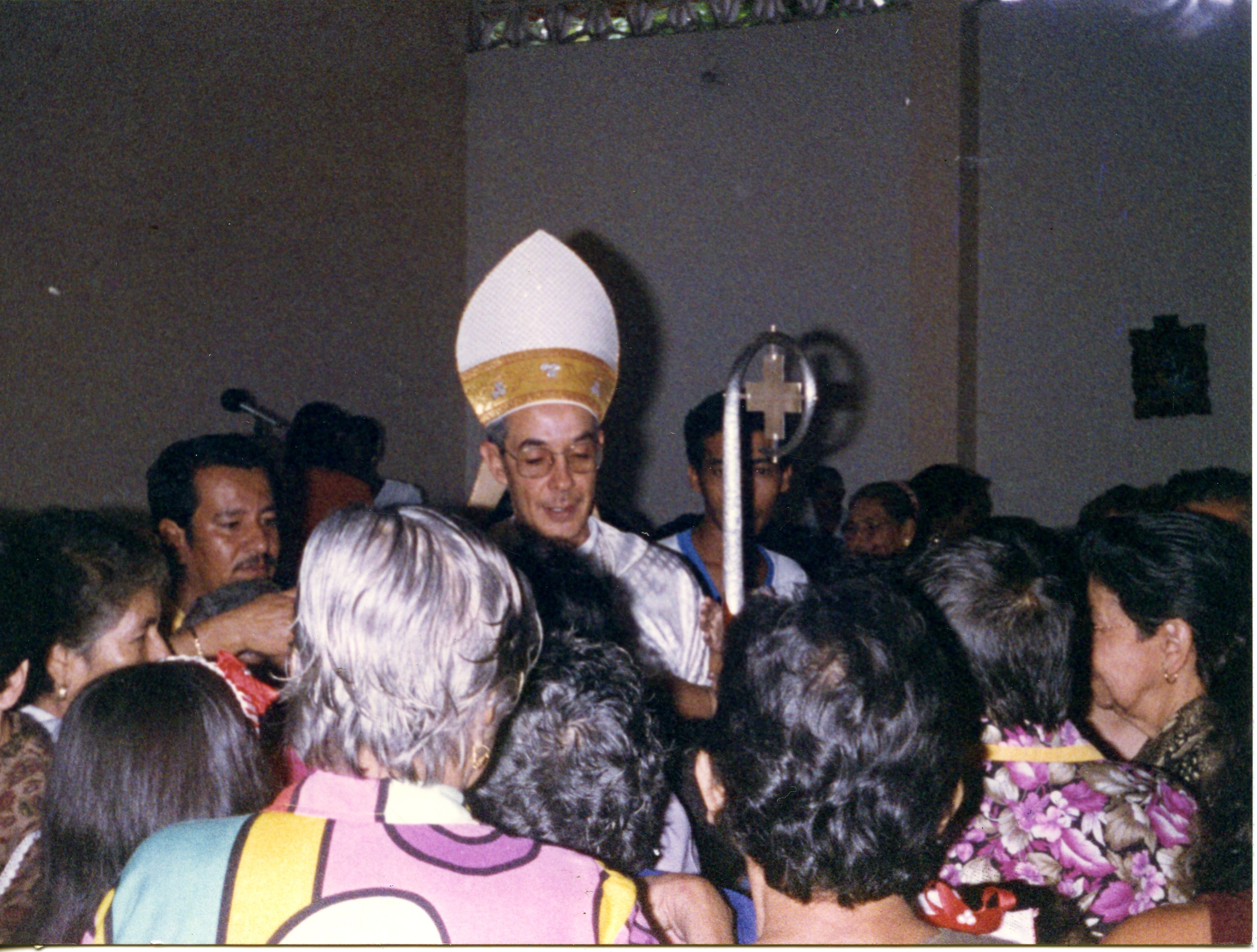 Foto del obispo de Cartago Luis Madrid Merlano en medio de un dialogo con los habitantes del municipio de Zarzal Valle