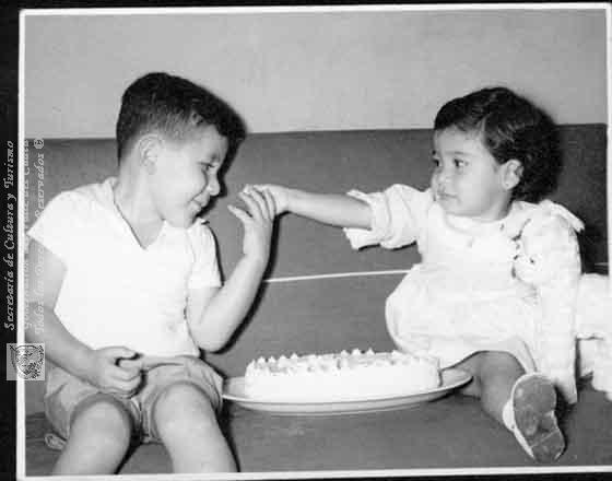 Los Hermanos Patricia y Alberto Quintero en una celebración especial. Santiago de Cali, C. 1.961