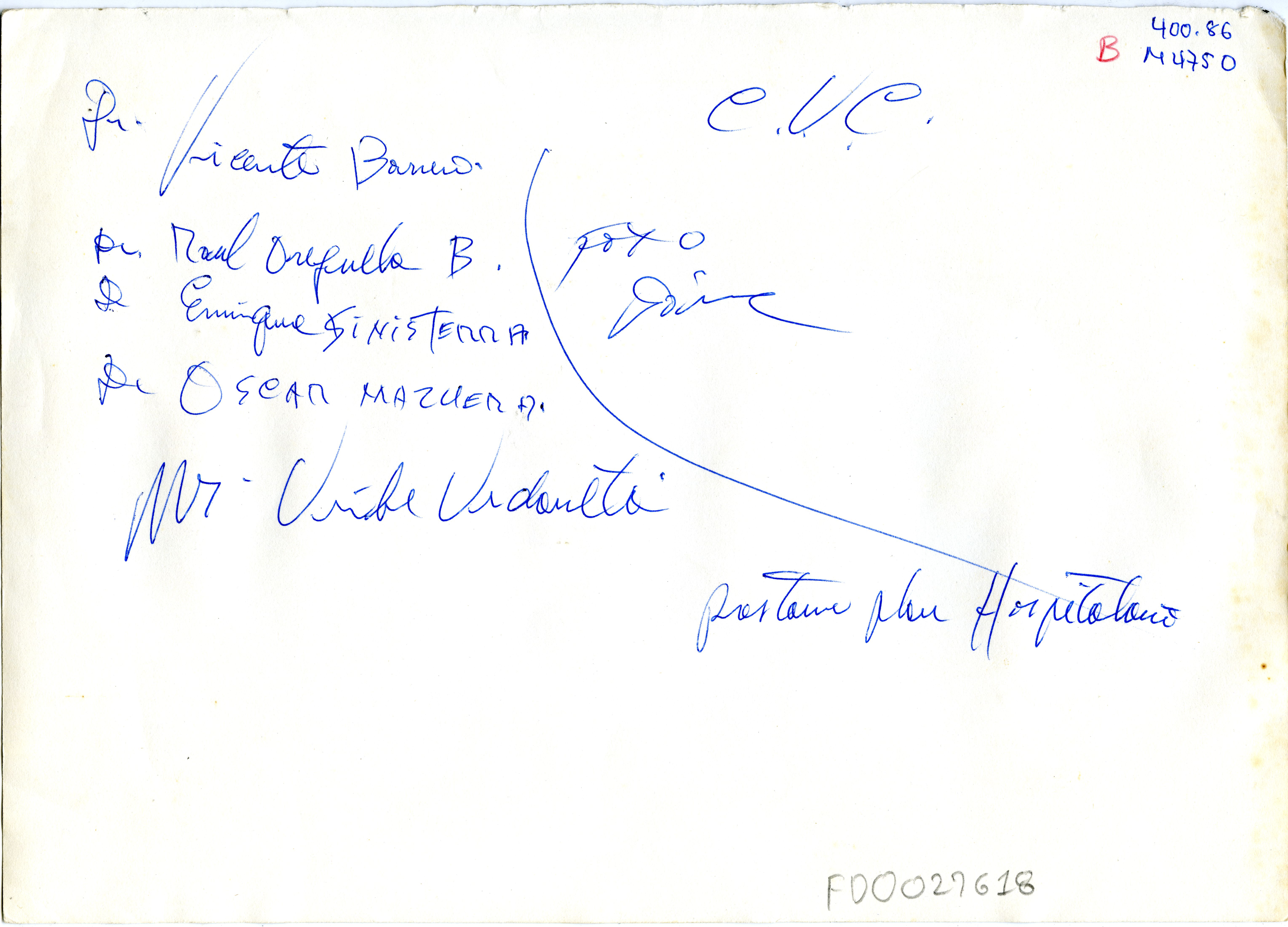 En la foto se observa a Oscar Mazuera en medio de una reunión con el Dr. Vicente Borrero, el Dr Raúl Orejuela y el Dr. Enrique Sinisterra.