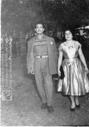 Ángel Euclides Ayala y María Teresa García, pareja de enamorados paseando por las calles de la ciudad. Santiago de Cali, fecha por identificar.