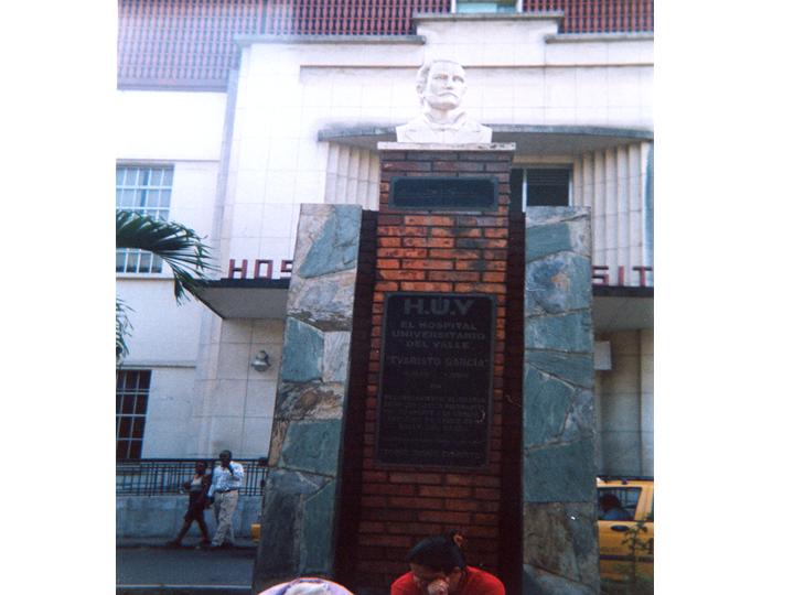 Francia Helena Lopez (2003). Monumento erigido en honor a Evaristo García, ubicado en la entrada principal del Hospital Universitario del Valle & A124. SANTIAGO DE CALI: Biblioteca Departamental Jorge Garces Borrero.