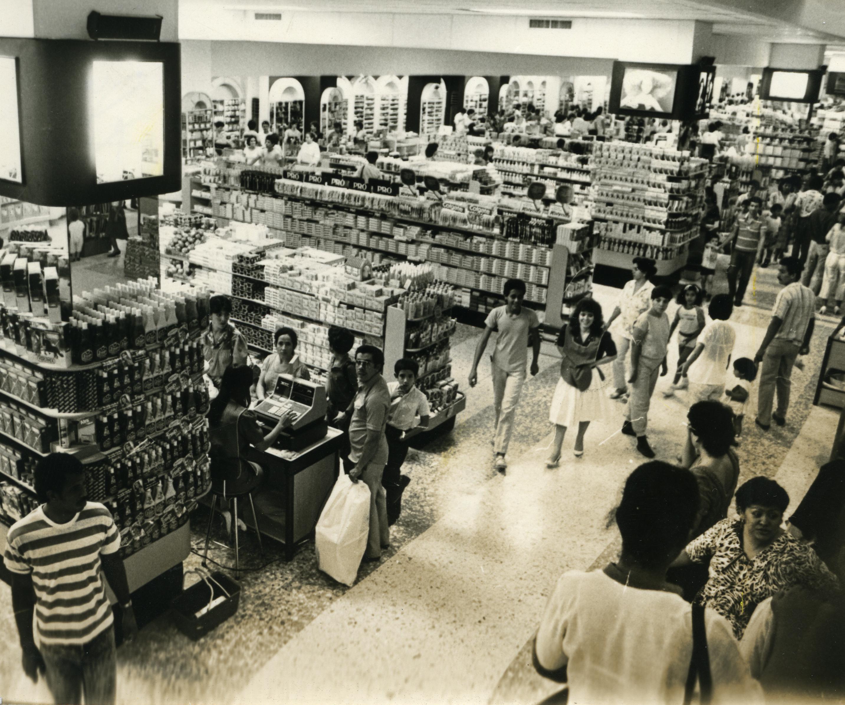 Almacenes la 14 fue fundada en Cali en 1964 por Abel Cardona Franco en la calle 14 del centro de la ciudad de ahí el origen de su nombre siendo originalmente una cacharrería. Su oferta comercial se desarrollaba a través de formatos de gran superficie y de tiendas de cercanía. En la gráfica se aprecia gente pagando en la caja