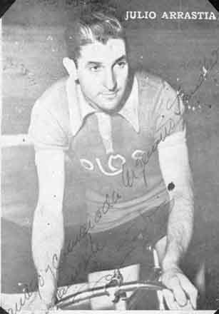 El ciclista Julio Arrastia le dedica una foto a Argemiro Sánchez; dice: para mi amigo y camarada Argemiro Sánchez. Santiago de Cali, 1952.