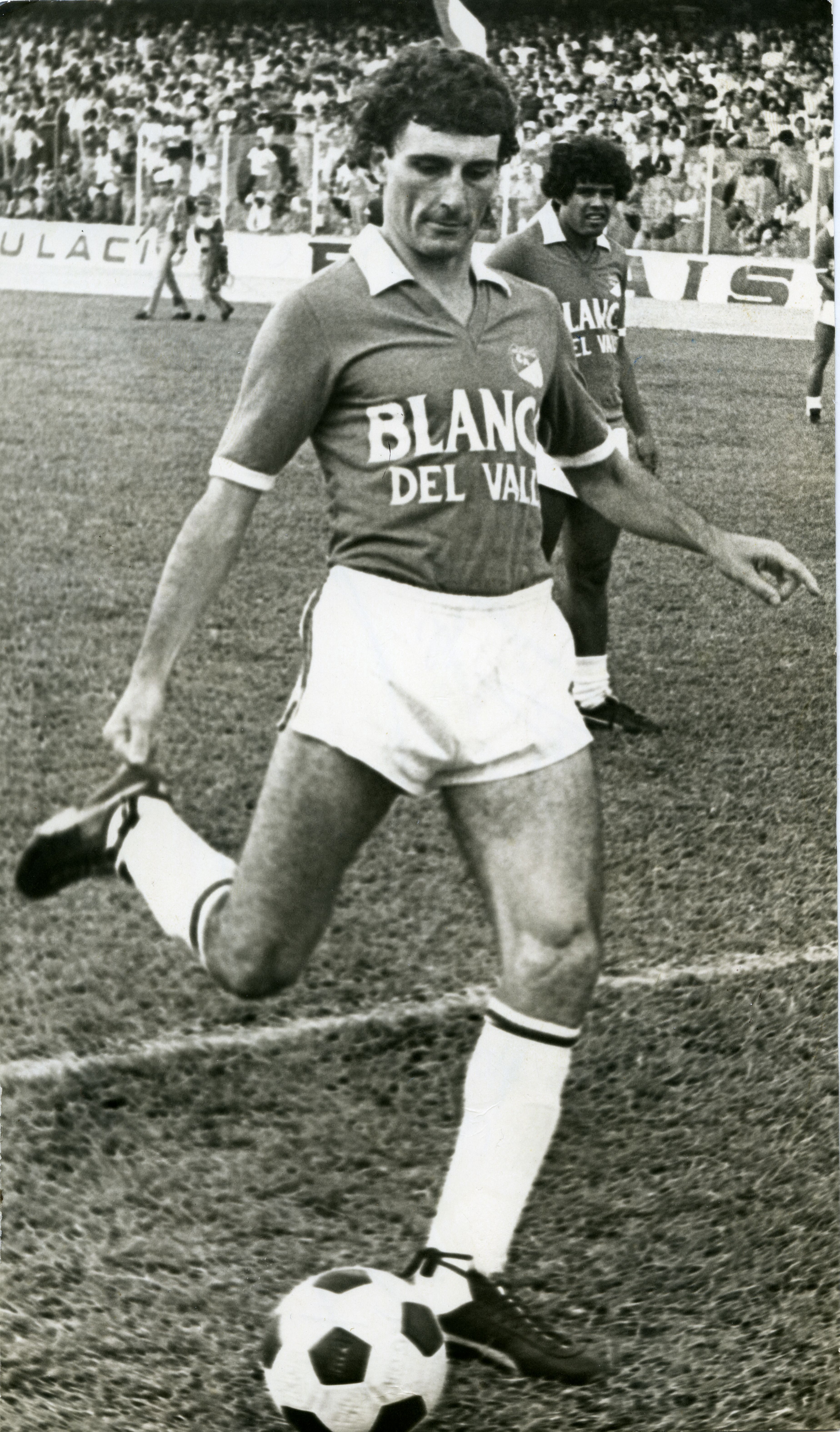 Raúl Horacio Capiello jugador del Deportivo Cali y Ángel María, calentando antes del partido