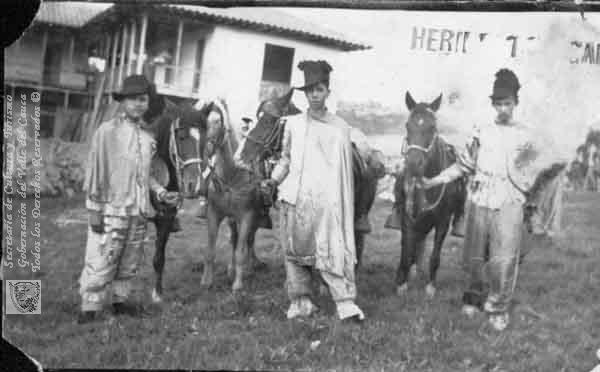 Heriberto García, frente a la Casa Campesina, durante lacelebración de las festividades de 6 de enero. Versalles. C. 1954.