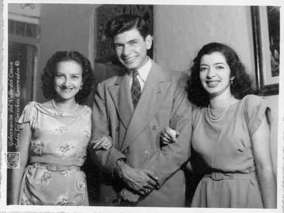 FOTO MULT (1949). El maestro YESID MONTAÑO RIZO, en una fiesta con dos amigas & 202280. SANTIAGO DE CALI: Biblioteca Departamental Jorge Garces Borrero.