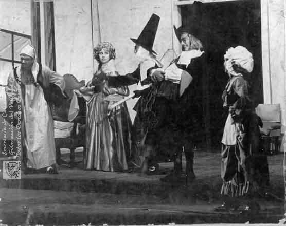 Obra de teatro " El enfermo imaginario", actores Luis Fernando Pérez, Aida Fernández, Humberto Arango, Edilberto Gómez y Lucy Martínez.,TEC. Cali. 1960.