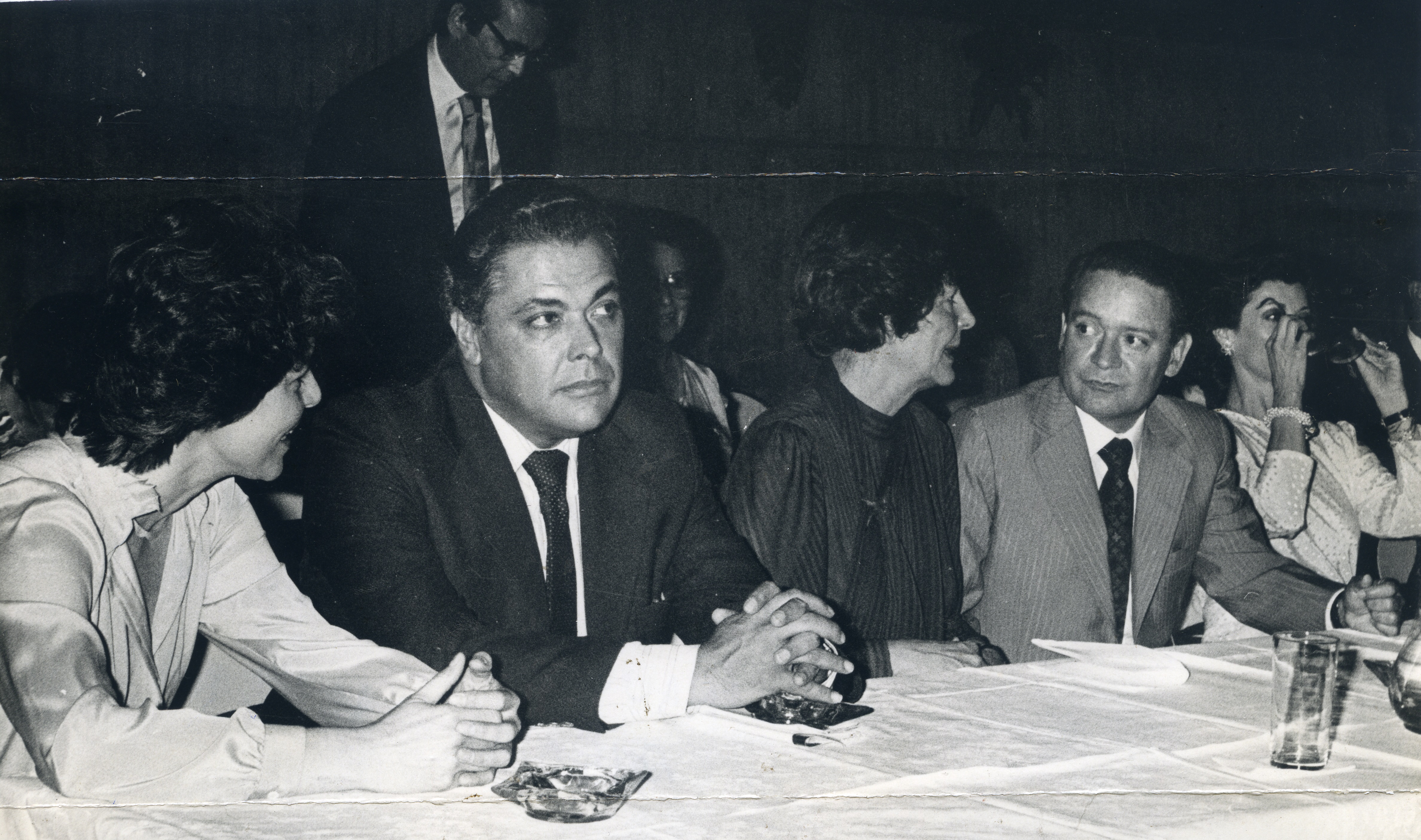 Se observa una mesa con los jurados de la IV Bienal: de izquierda a derecha: Gloria Zea, Rodrigo Escobar, Maritza Uribe de Urdinola y Hto. González.