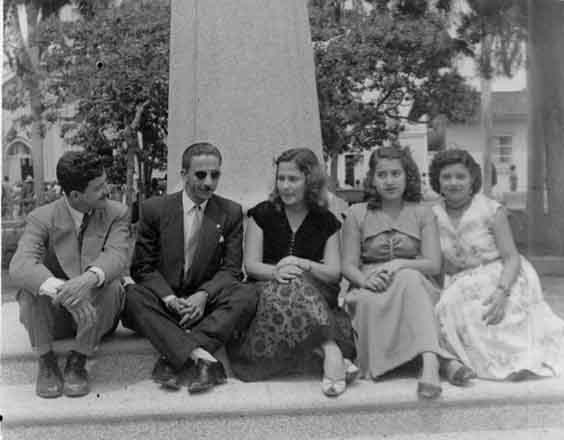 La infaltable foto en el parque principal del municipio, en ésta, Alejandro Arce y Marlene Delgado en compañía de los amigos. Yotoco, 1950.