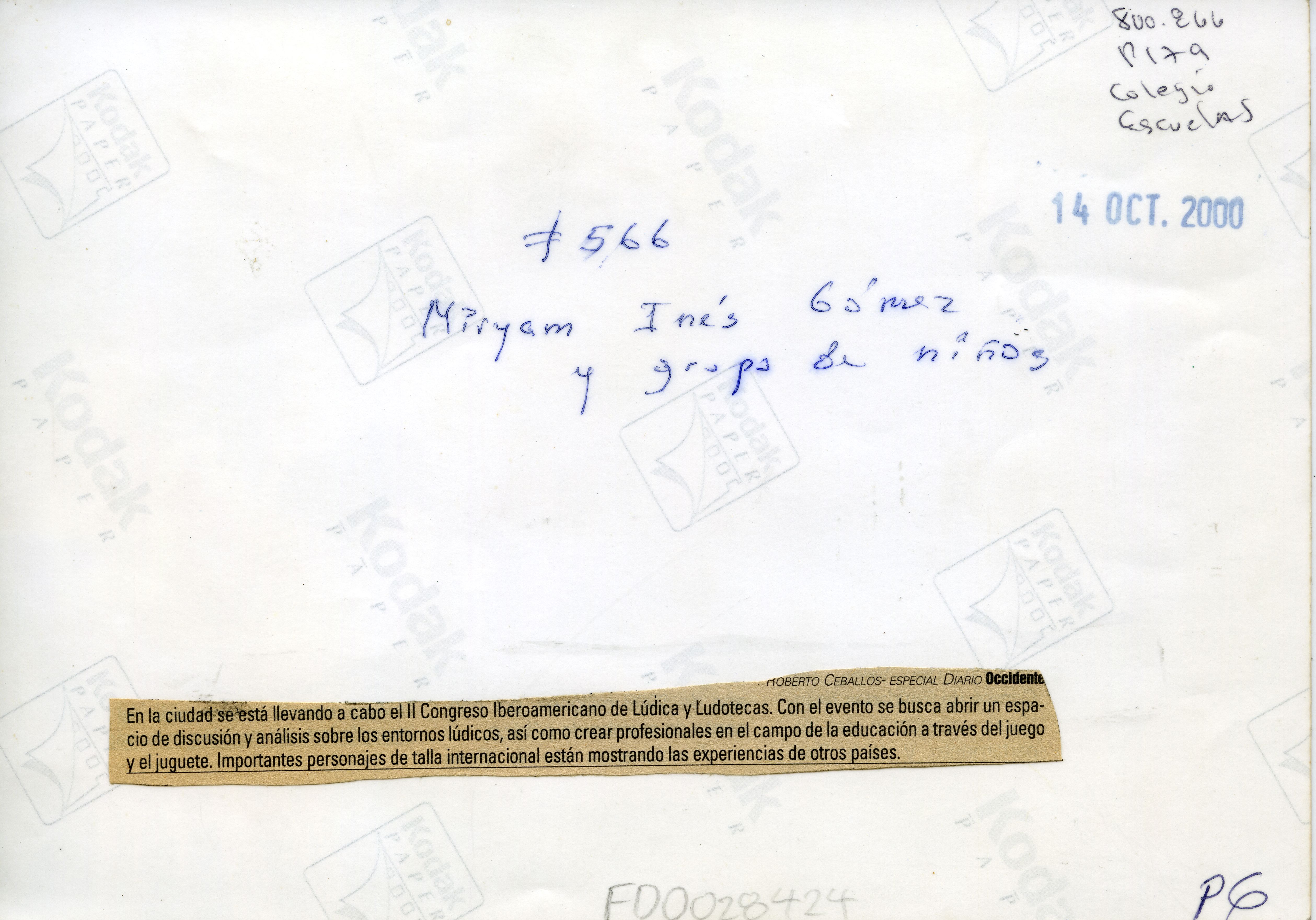 Reverso:"En la ciudad se está llevando a cabo el II Congreso Iberoamericano de Lúdica y Ludotecas. Con el evento se busca abrir un espacio de discusión y análisis sobre los entornos lúdicos, así como crear profesionales en el campo de la educación a través del juego y el juguete. Importantes personajes de talla internacional están mostrando las experiencias de otros países."