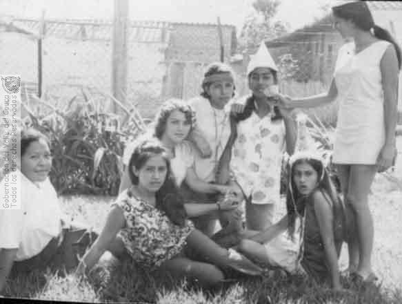 Reunión de amigas en el patio de la vieja sede de la Normal Las Mercedes. Zarzal, 1971.