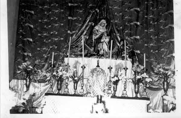 Altar del antiguo Templo parroquial adornado para la Fiesta patronal de Santa Ana del Pescador. Bolívar, 1962
