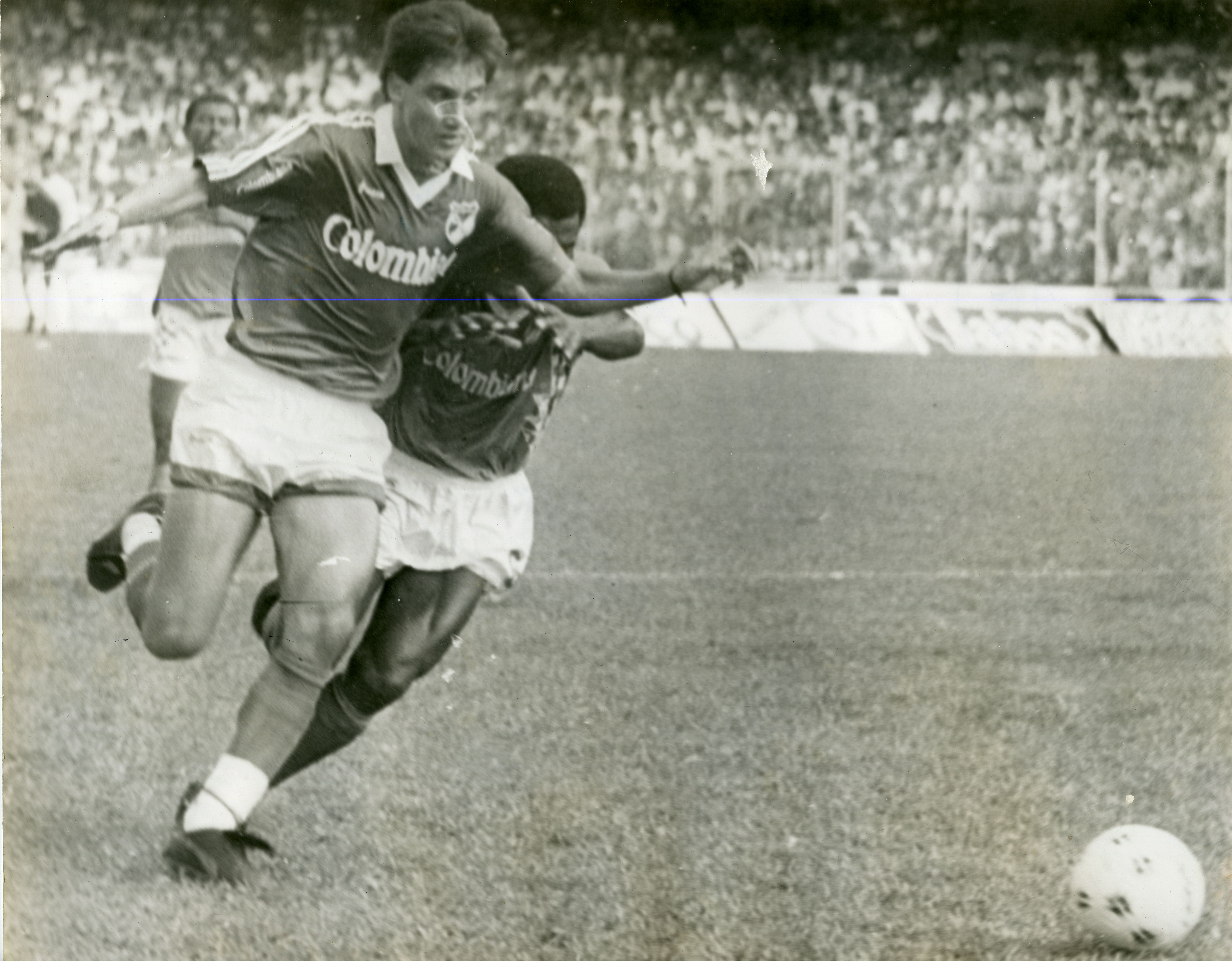 Partido de fútbol del Deportivo Cali vs Millonarios realizado en el Olímpico Pascual Guerrero.Se aprecia jugadores en el campo de juego disputando el balón