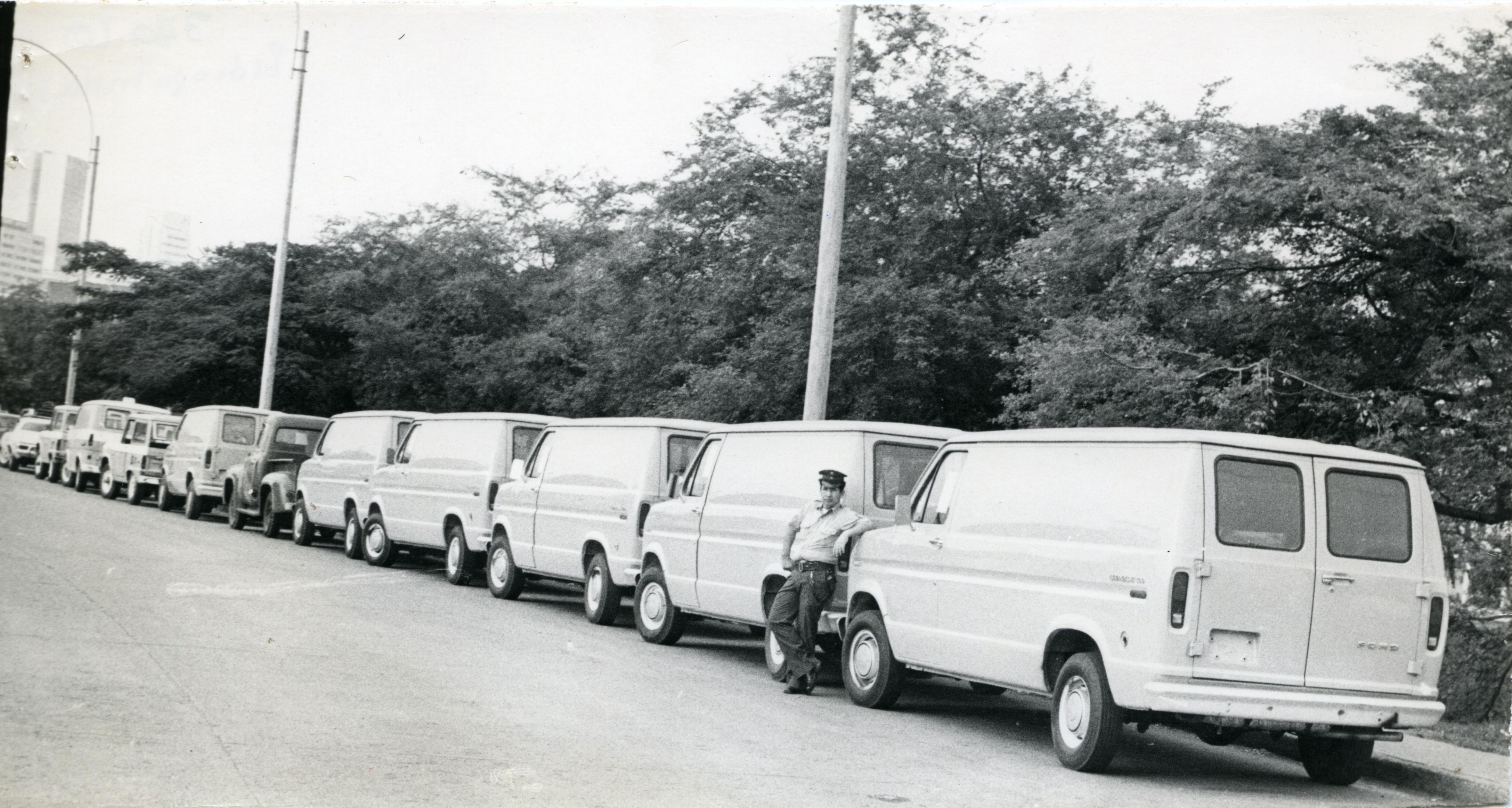 En la fotografía se observa una fila Radiopatrullas de la policía. Observamos Policía en el lugar