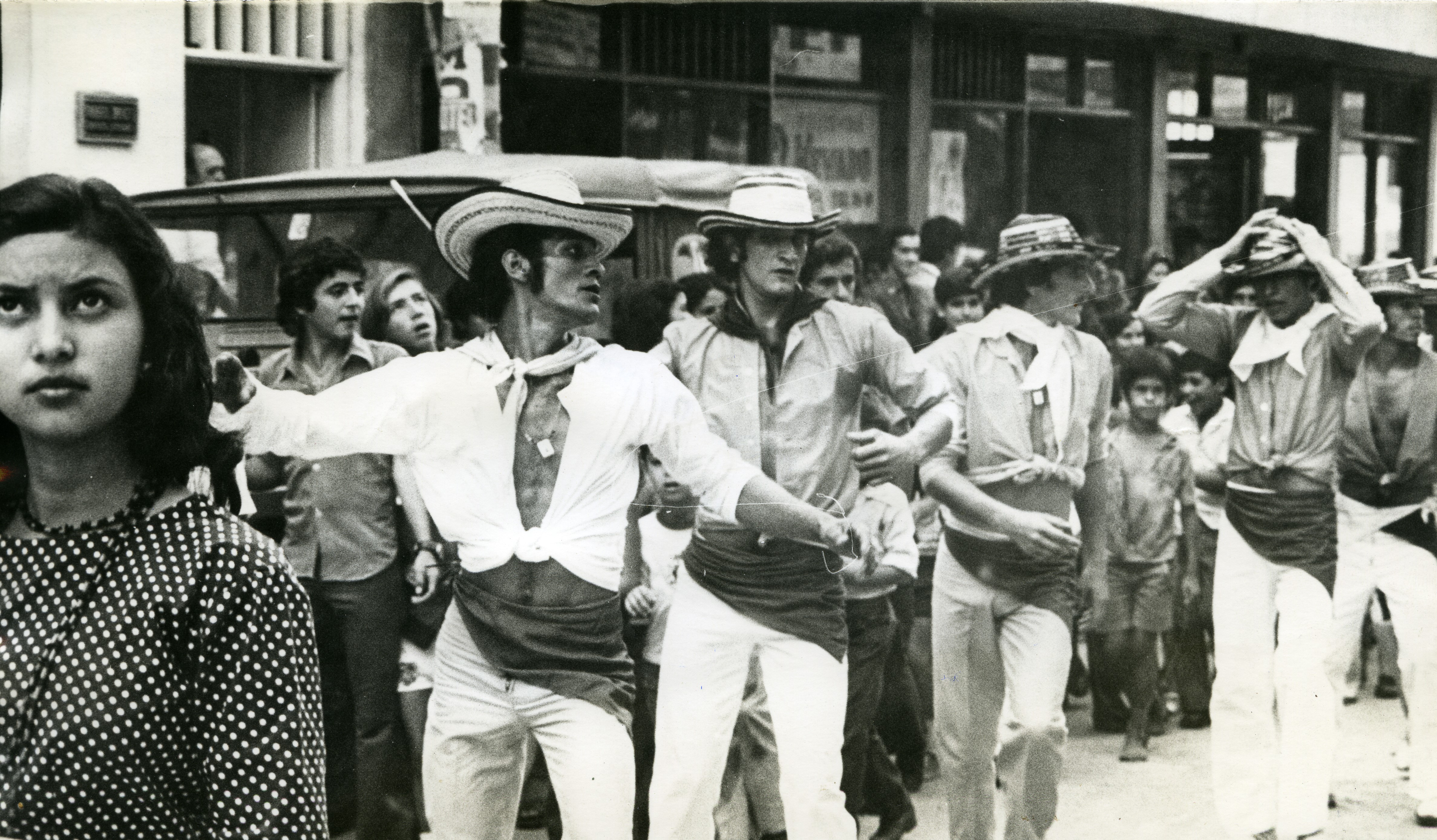 Grupo de danzas en una comparsa en el municipio de Caicedonia