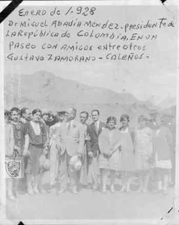 El señor Presidente Miguel Abadía Méndez, acompañado de un grupo de amigos entre los cuales se encontraba Gustavo Zamorano
