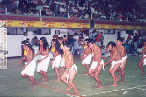 Indígenas provenientes de Buenaventura en presentación cultural en el Coliseo de Sevilla. 1996.