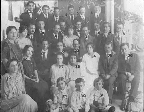 Integrantes del "Círculo Potes": Eduardo Restrepo White, Adán Uribe, Alicia Uribe de Restrepo, Leonor Uribe, Juán Uribe, Alicia White de Restrepo, Gertrudis Potes Rodríguez, Santiago Lozano, Alejandro y Luís Uribe R