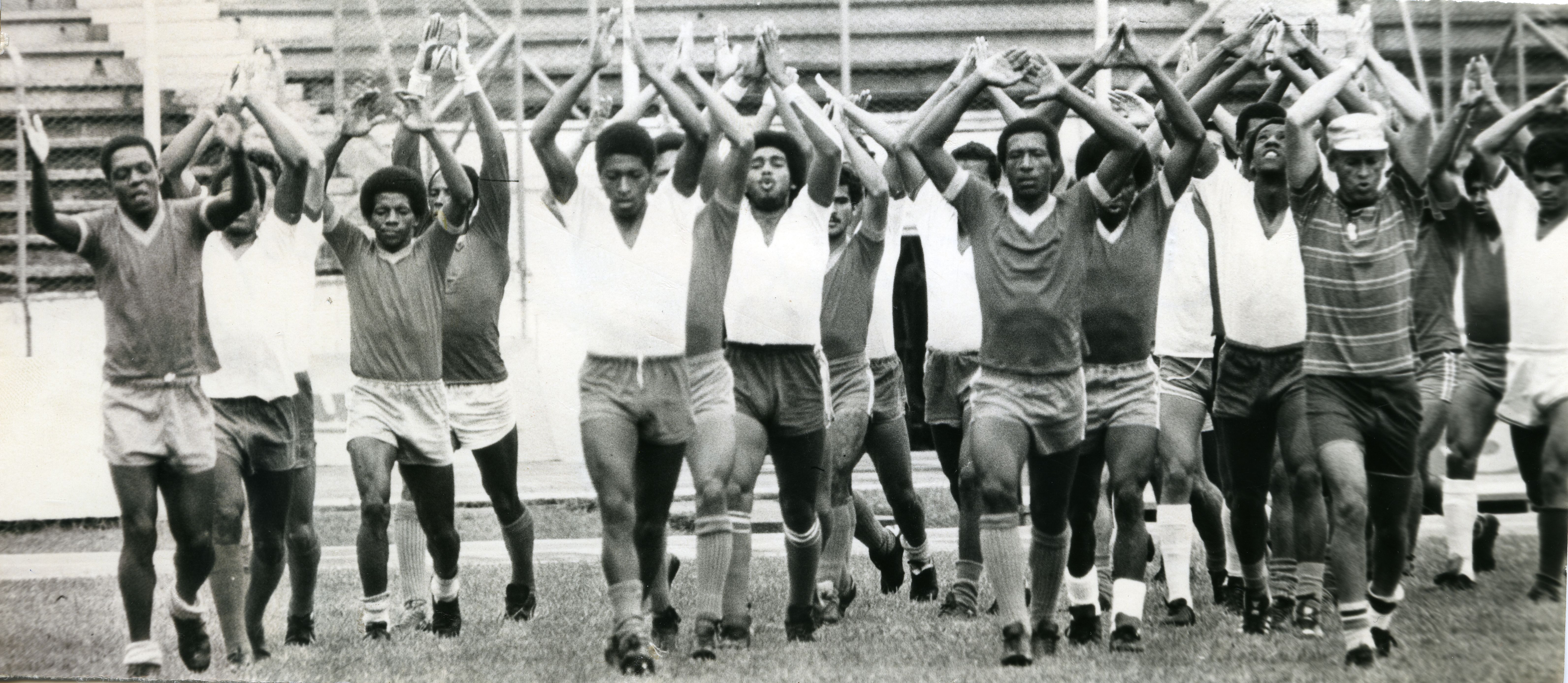 Escena jugadores América de Cali, entrenando en el estadio Pascual Guerrero