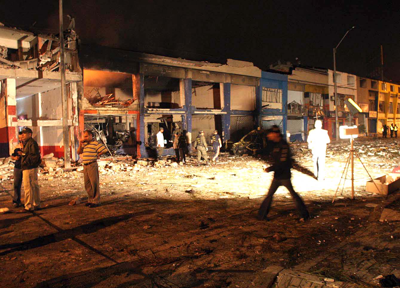 Registro fotográfico de las instalaciones cercanas al comando de la policía metropolitana después del atentado con carro bomba.