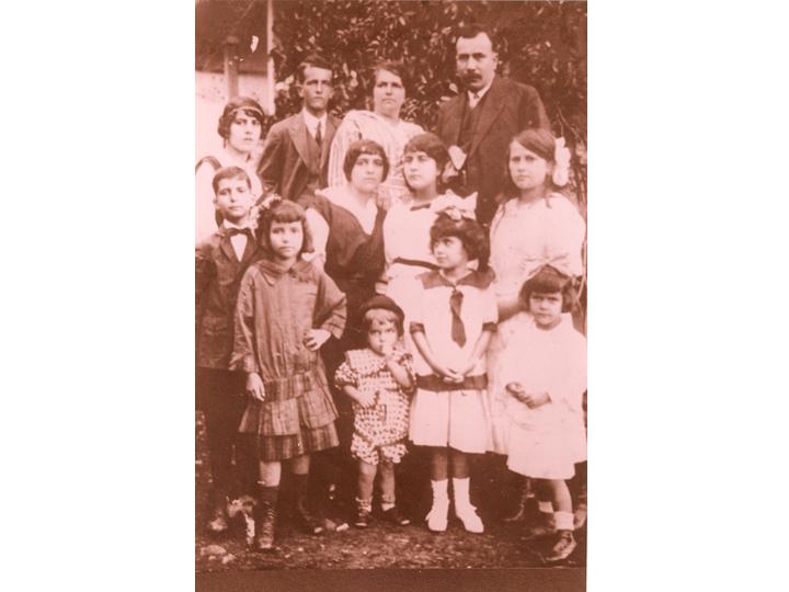 Miembros de la familia Quintero Valdés en su hacienda El Barranco. Se observan el padre, la madre y los hijos. Pradera, 1917.