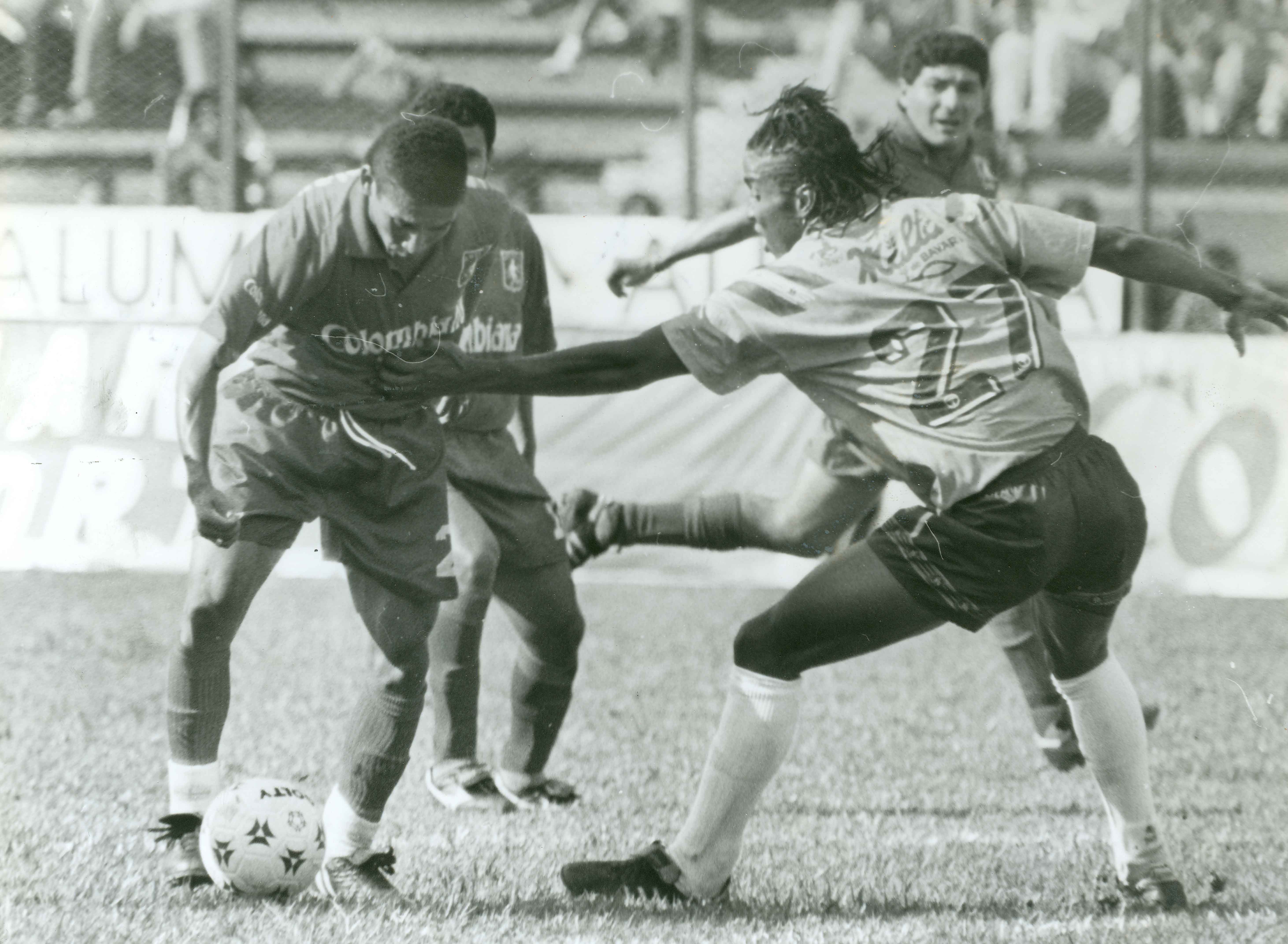 Diario Occidente (1994). Henry Zambrano, jugador del América, disputa el balón. Santiago de Cali: Biblioteca Departamental Jorge Garcés Borrero.