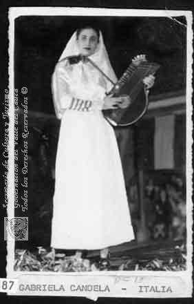 Gabriela Candela, representando a Italia en el desfile imperial realizado en el Club Orión. Cartago C. 1950.