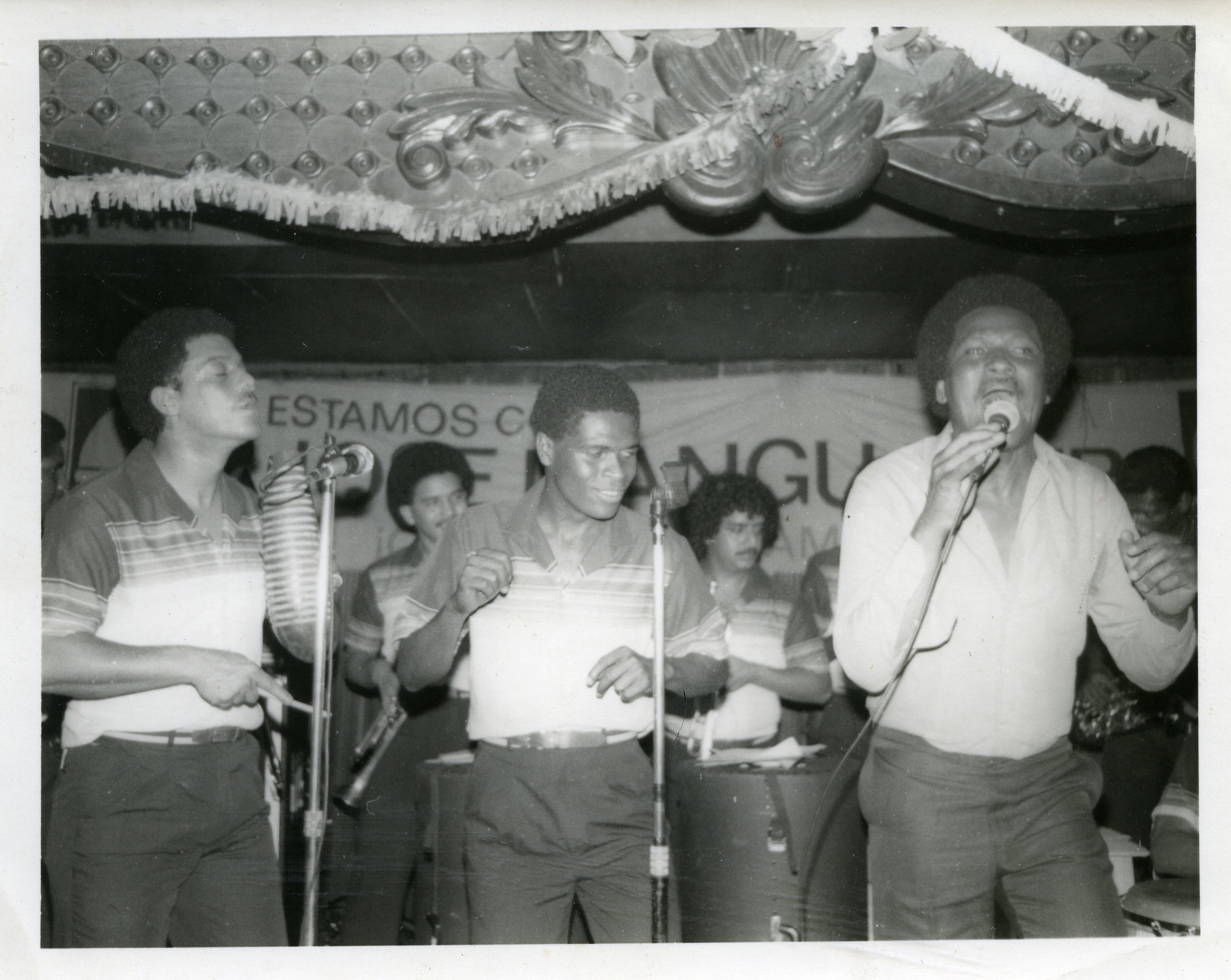Fotografia donde se muestra a Jairo Varela e integrantes del Grupo Niche en escenario