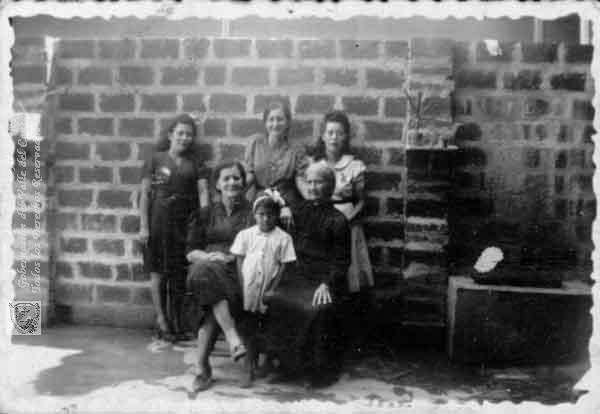 Salbadora, Julia, Robertina, Leopoldina y Dolores Bejarano, en le patío de la casa