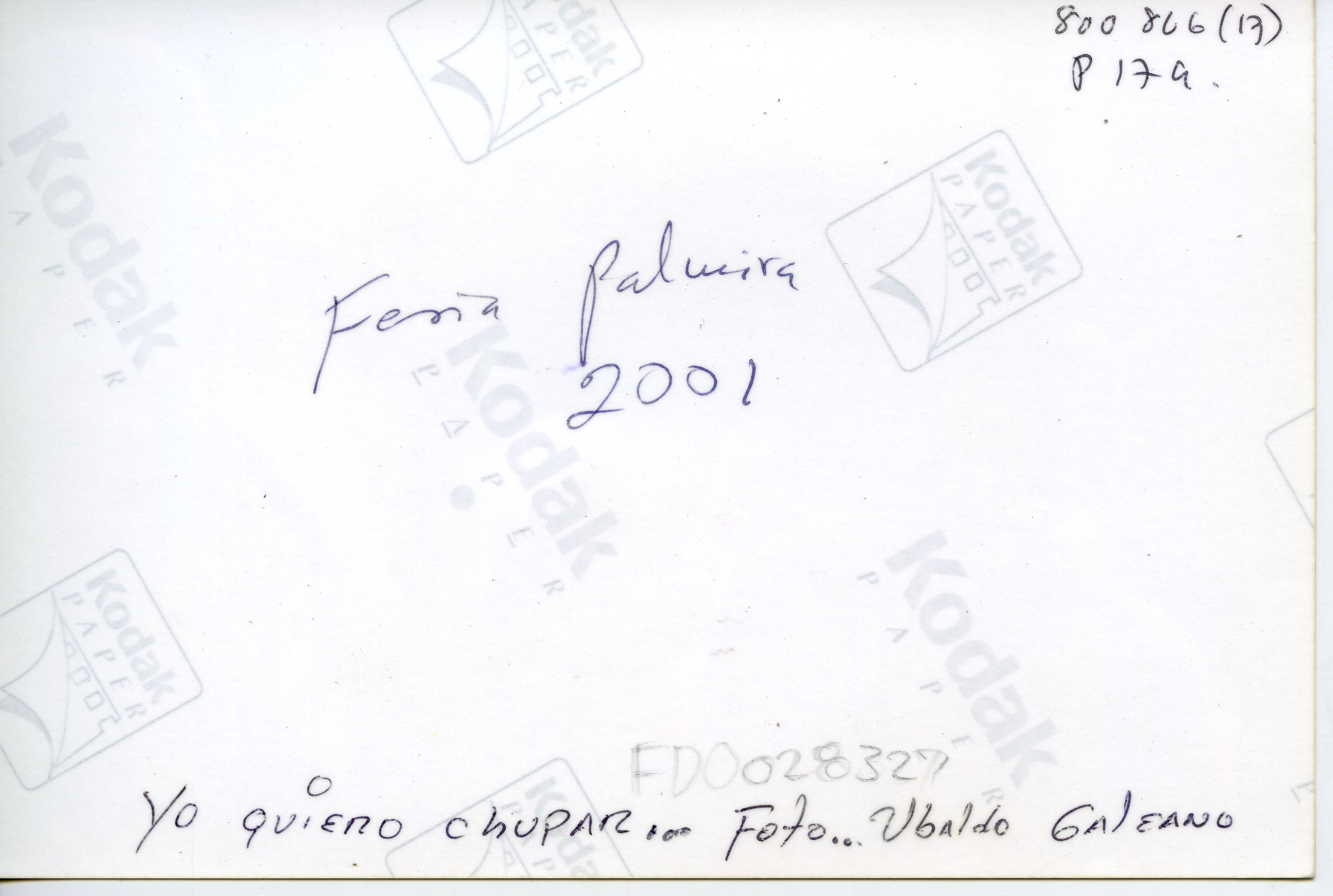 En la fotografía se ve a varias personas refrescándose con una bebida congelada, bajo el sol del Palmira en la Feria de la ciudad del año 2001, en el reverso de la foto se describe con el titulo. " Yo quiero chupar"