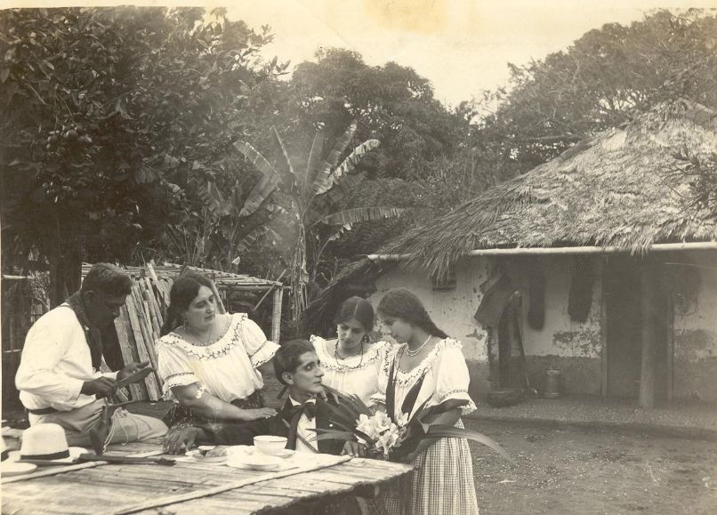 Hernando Sinisterra representando a Efraín y Elvia y Virginia Álvarez, en la película María, novela escrita por Jorge Isaccs, una de las más inmportnates del género romático en el siglo XIX. Hacienda el Paraiso- El Cerrito. fecha de filmación, 1920.