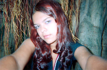 Autorretrato. Imagen tomada con flash, Como fondo un árbol de caucho. Primer plano.