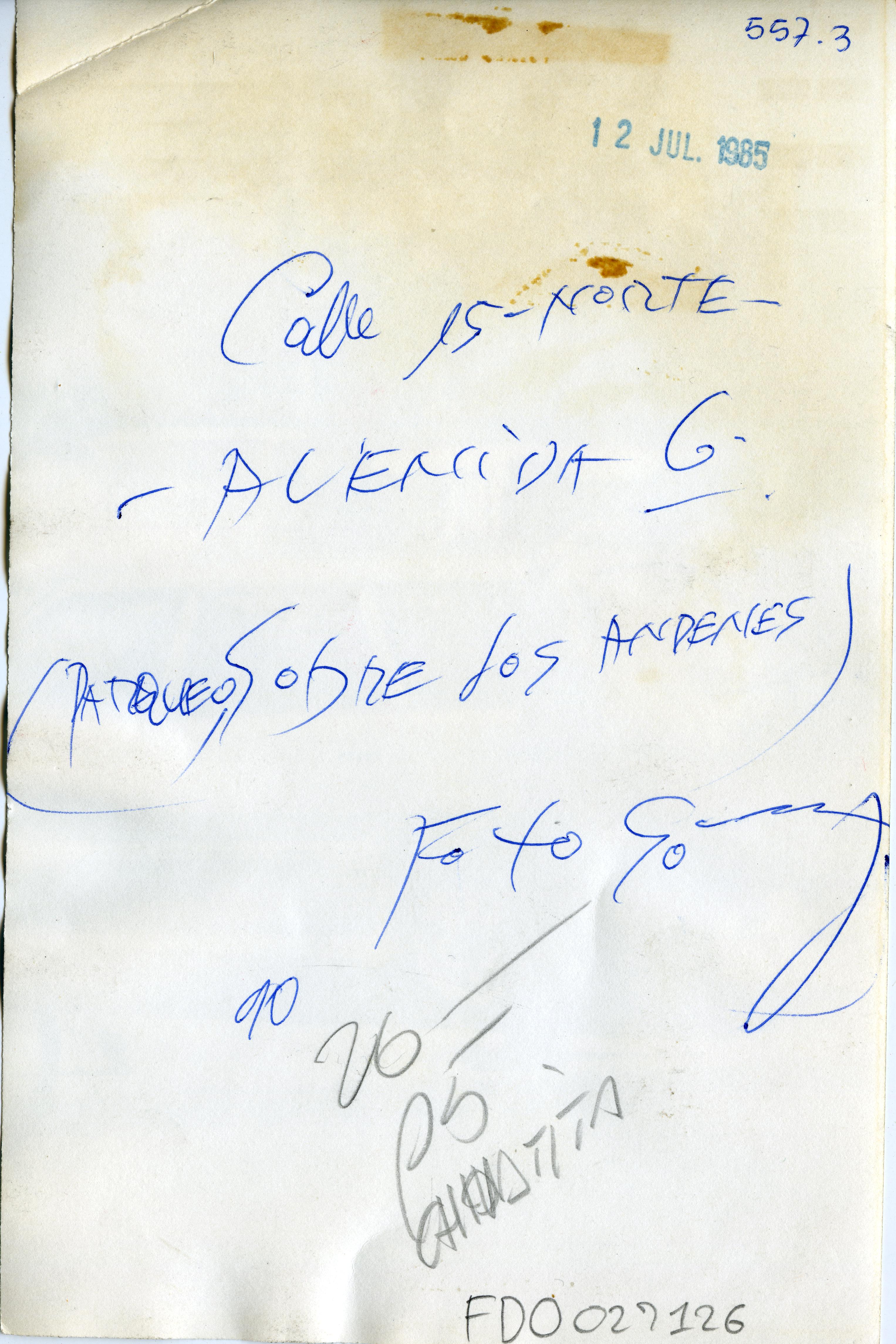 Manuscrito: Calle 15 Norte Avenida 6. (Parqueo sobre los andenes)