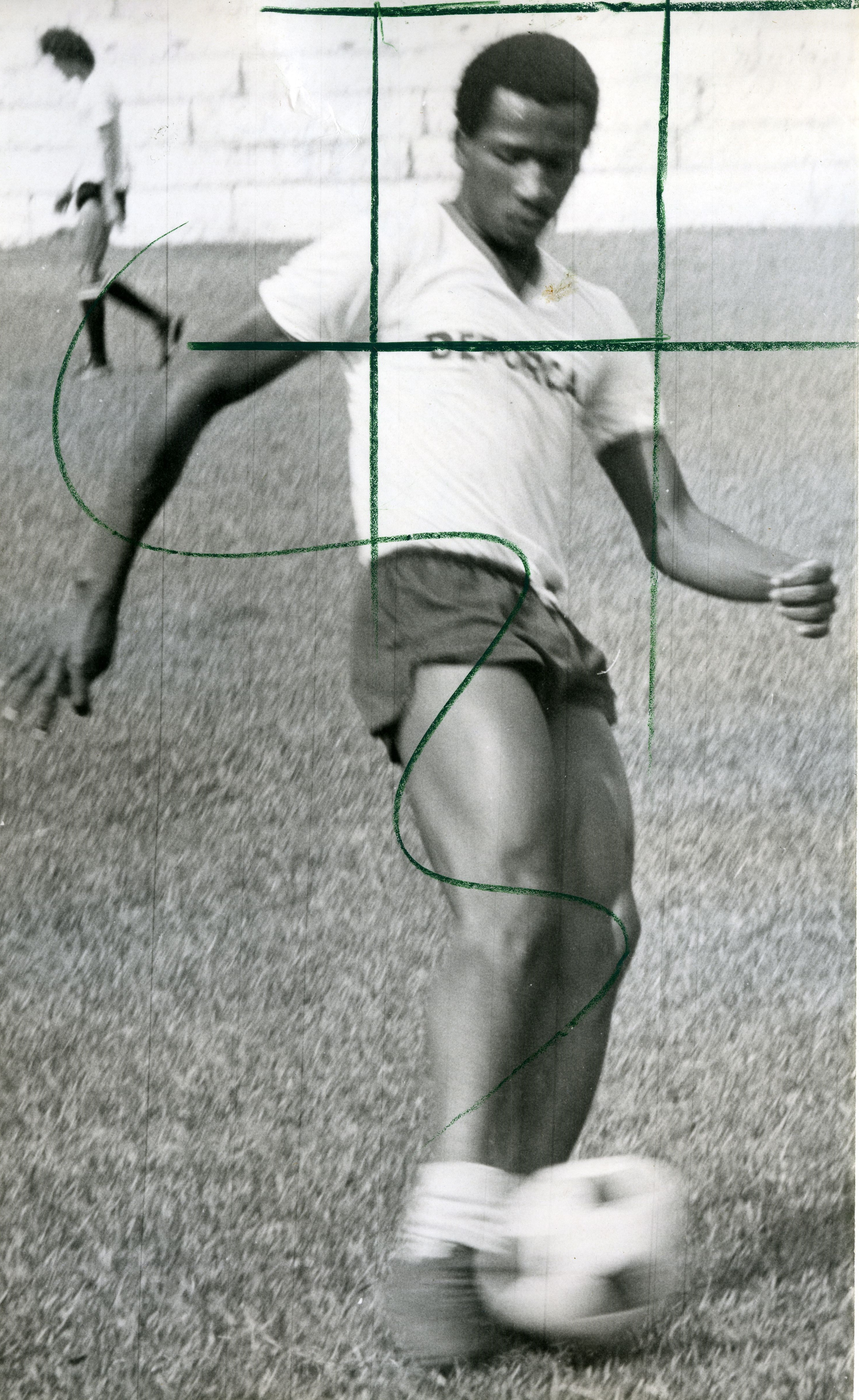 Deportivo Cali, club de fútbol colombiano del Valle del Cauca de la ciudad de Santiago de Cali, Sus inicios se remontan al 23 de noviembre de 1912 y posteriormente ha participado del fútbol profesional desde el año 1948 en donde ha obtenido 10 títulos como campeón del torneo colombiano al 2021, Campeón Copa Colombia 2010, Campeón Superliga de Colombia 2014, ha sido dos veces finalista de la Copa Libertadores de América. Se aprecia a Jorge Eliecer Ambuila Rodríguez en sesión de entrenamiento dominando el balón