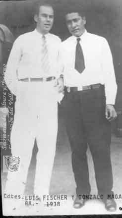 s. n. & s. n. (1938). Comandantes Luis Fischer y Gónzalo Magaña en la estación central & 501270. OTRO: Biblioteca Departamental Jorge Garces Borrero.