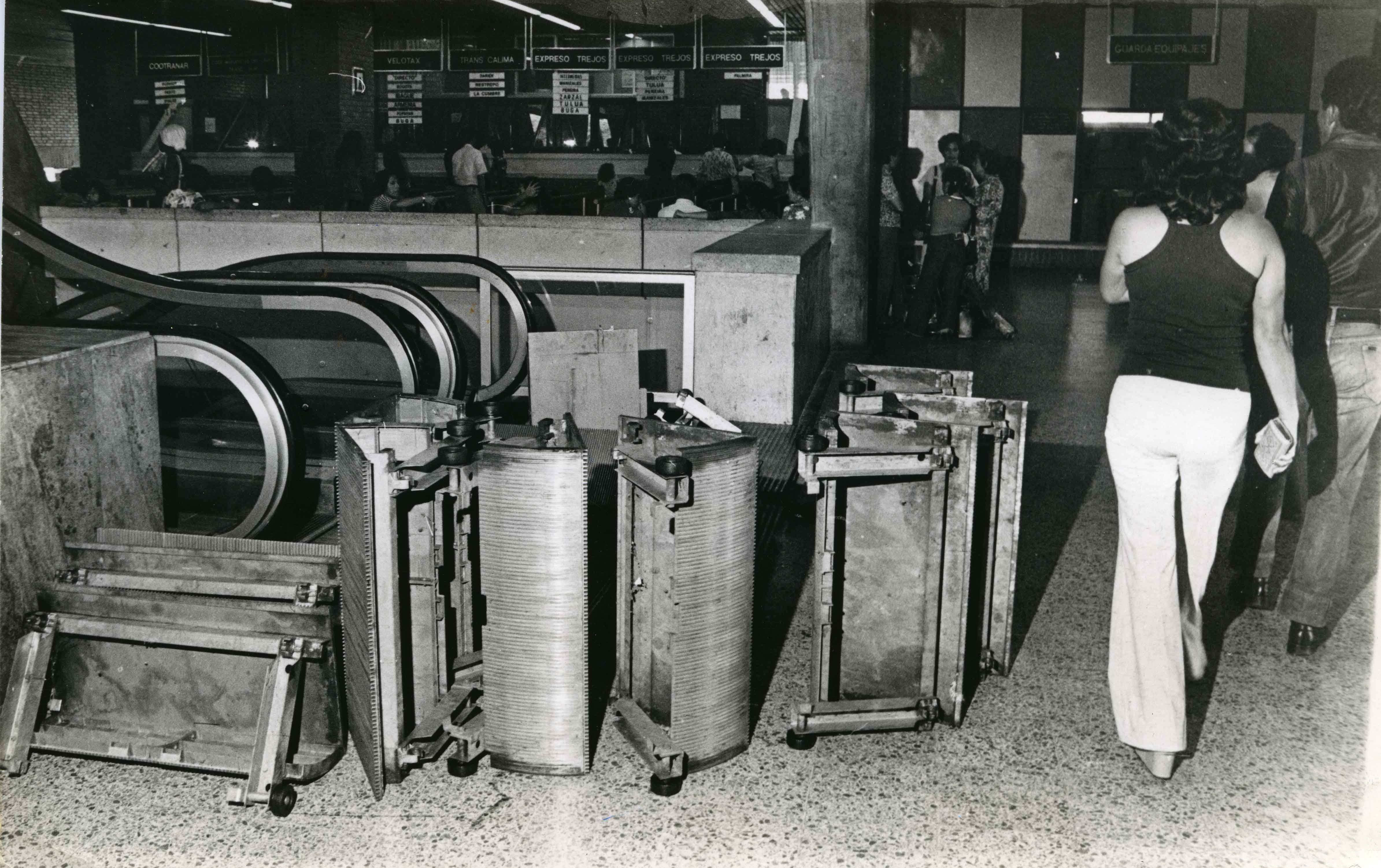 Reparación de las escaleras eléctricas de la terinal de transportes de Cali. El Archivo del Patrimonio Fotográfico y Fílmico del Valle del Cauca es responsabilidad de la Biblioteca Departamental del Valle Jorge Garcés Borrero, por convenio de cooperación suscrito con la Secretaria del Cultura Departamental, con el fin de aunar esfuerzos para su conservación, preservación y divulgación del Archivo entre la comunidad Vallecaucana, especialmente entre los estudiantes e investigadores que visitan la Biblioteca, propiciando el su uso y consulta permanente. La universidad Icesi es un colaborador en el proceso de difusión, facilitando la tecnología que permite la consulta de las imágenes.