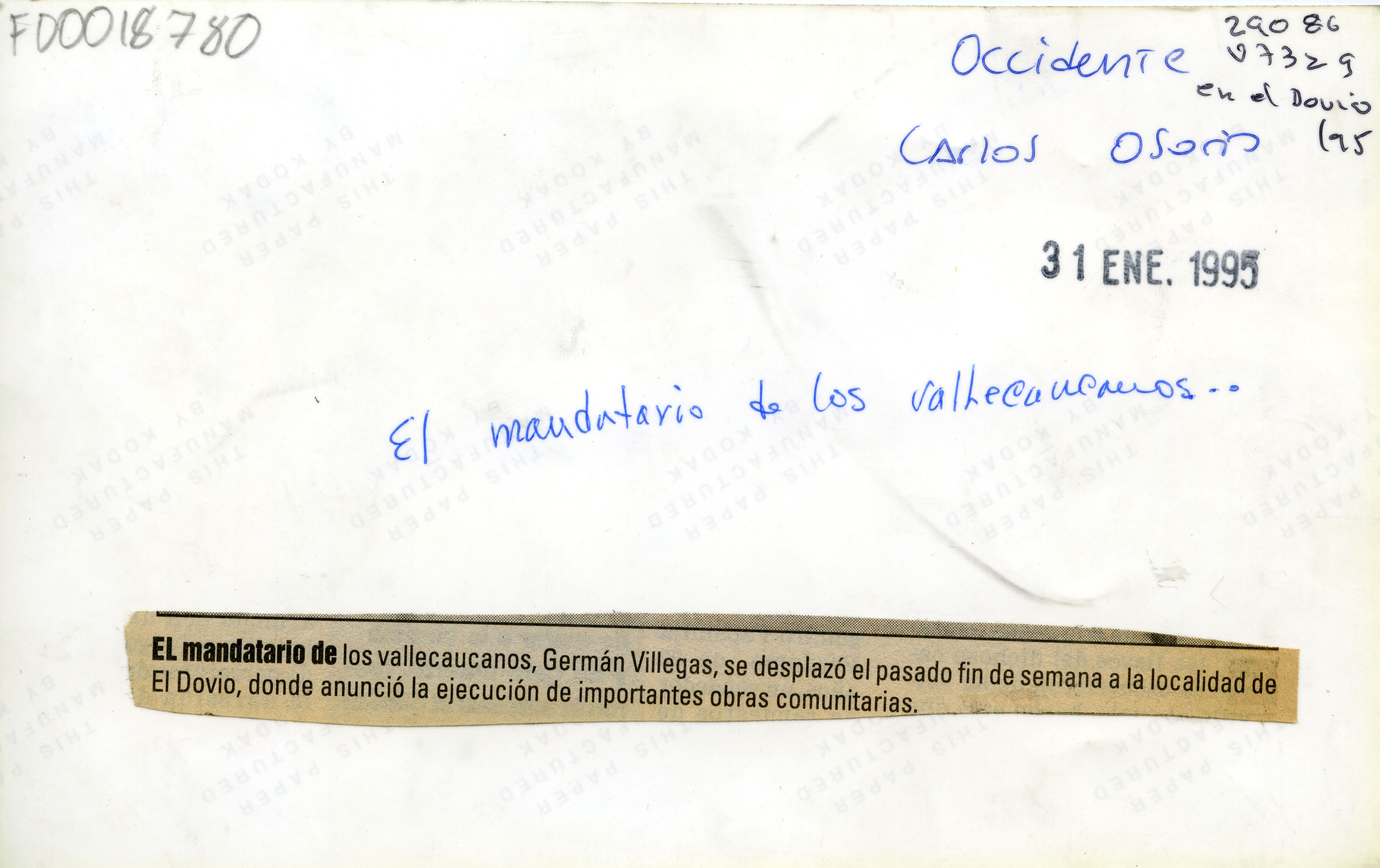 | dc.description.abstract | El mandatario de los vallecaucanos, Germán Villegas Villegas, se desplazó el pasado fin de semana a la localidad de El Dovio, donde anunció la ejecución de importantes obras comunitarias | spa |