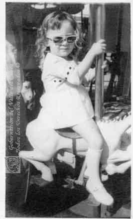 Disfrutando de los juegos infantiles, con gafas para el sol. Cali, 1970.