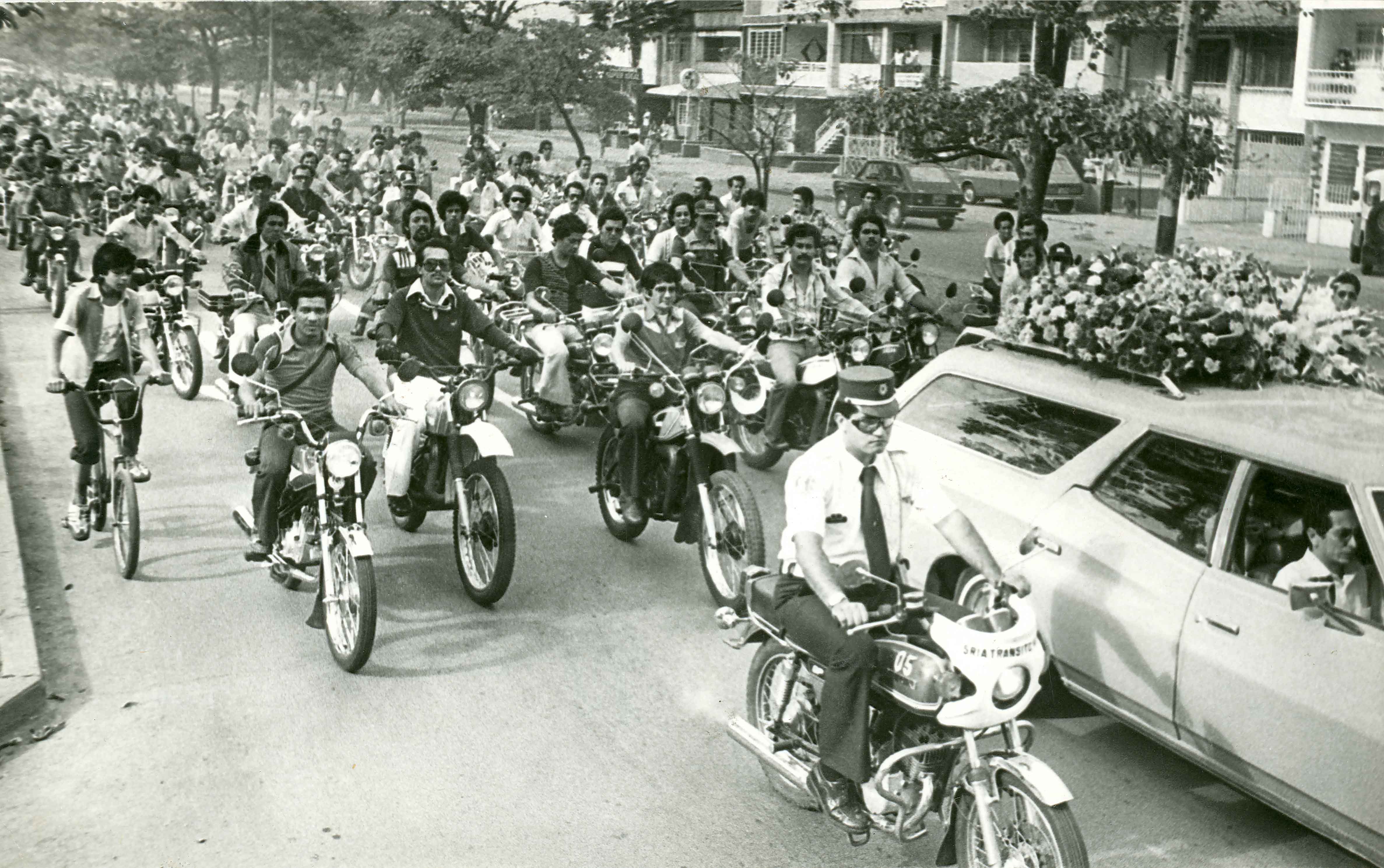 Manifestación de motociclistas, protesta a manera de desfile por las calles de Cali, acompañamiento a un entierro. El Archivo del Patrimonio Fotográfico y Fílmico del Valle del Cauca es responsabilidad de la Biblioteca Departamental del Valle Jorge Garcés Borrero, por convenio de cooperación suscrito con la Secretaria del Cultura Departamental, con el fin de aunar esfuerzos para su conservación, preservación y divulgación del Archivo entre la comunidad Vallecaucana, especialmente entre los estudiantes e investigadores que visitan la Biblioteca, propiciando el su uso y consulta permanente. La universidad Icesi es un colaborador en el proceso de difusión, facilitando la tecnología que permite la consulta de las imágenes.