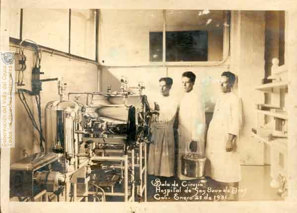 El médico eladio Arias Gómez en las instalaciones del Hospital San Juan de Dios. Santiago de Cali, 1931.