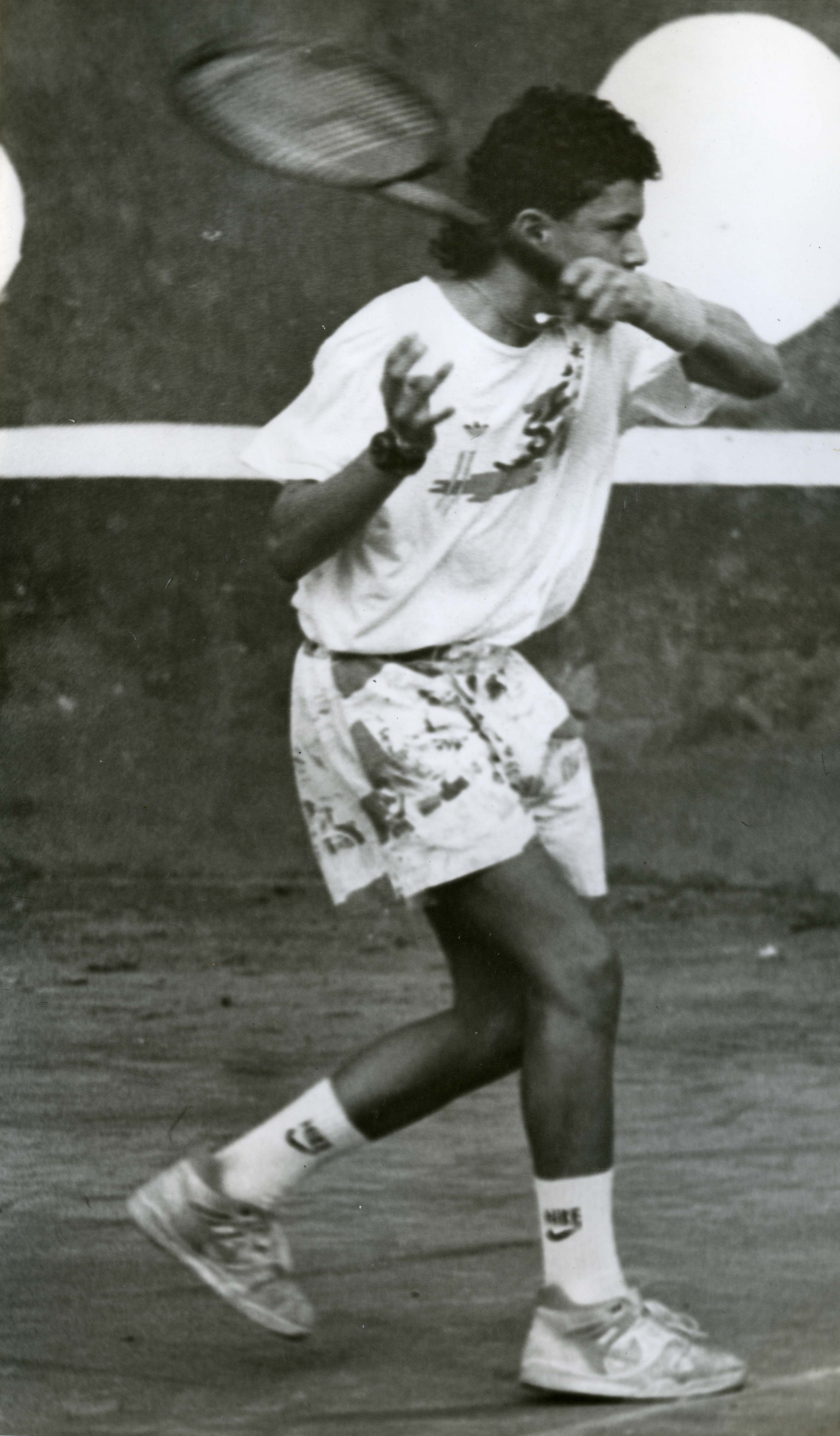 Carlos Drada, jugador de tenis caleño. Fotografia tomada en 1990